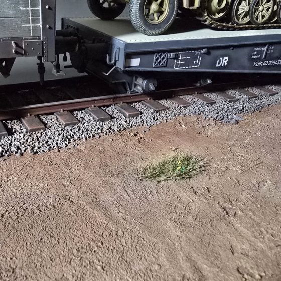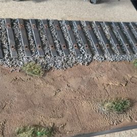 Une fois le tout bien sec, je déposerai du ballast entre chaque traverse, je le fixerai avec le même mélange magique… puis j’attaquerai la mise en peinture. Plus simple, plus efficace, et à mon avis, bien plus clean
