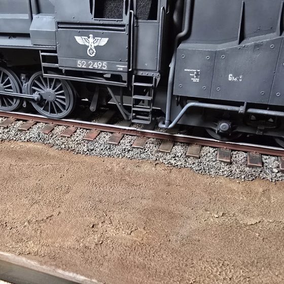 Composé d’une locomotive BR52, de plusieurs wagons, véhicules et figurines, ce projet mobilise actuellement trois membres du club, tous animés par la même volonté de recréer une scène chargée d’histoire. Ici, pas de décor grandiloquent — juste une voie ferrée, comme seul témoin d’un mouvement suspendu dans le temps.
