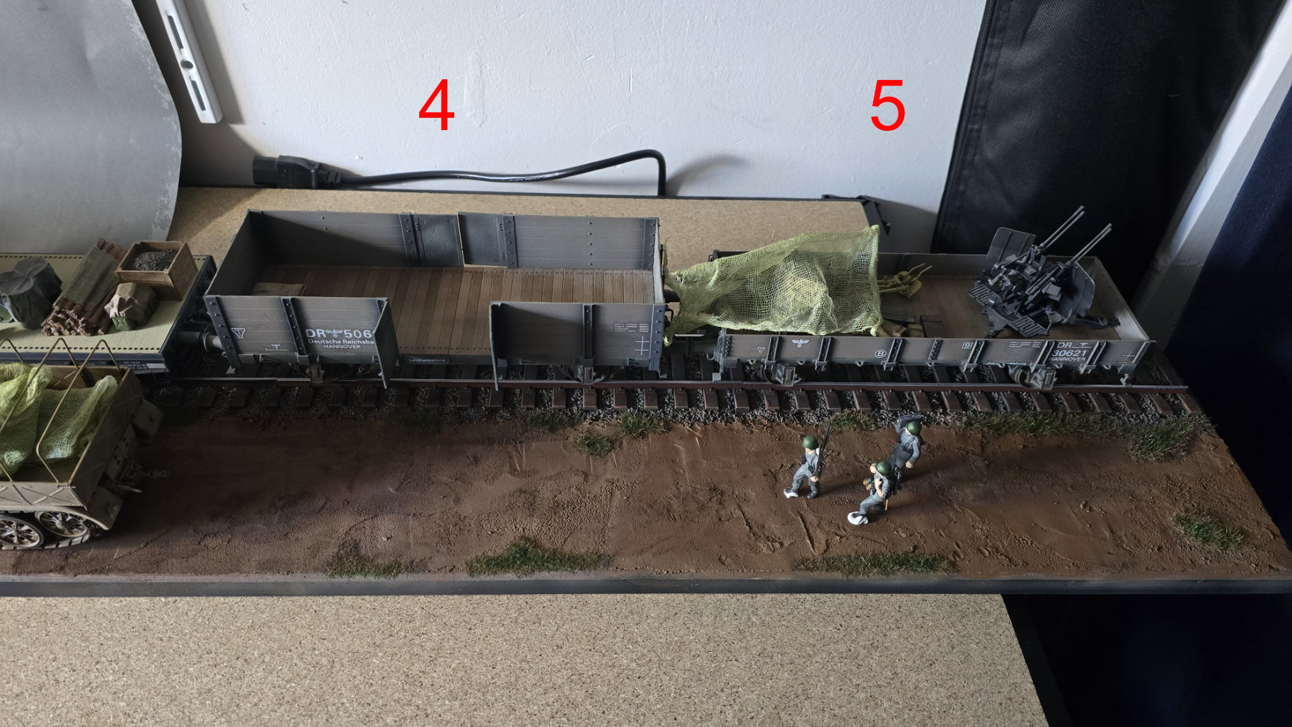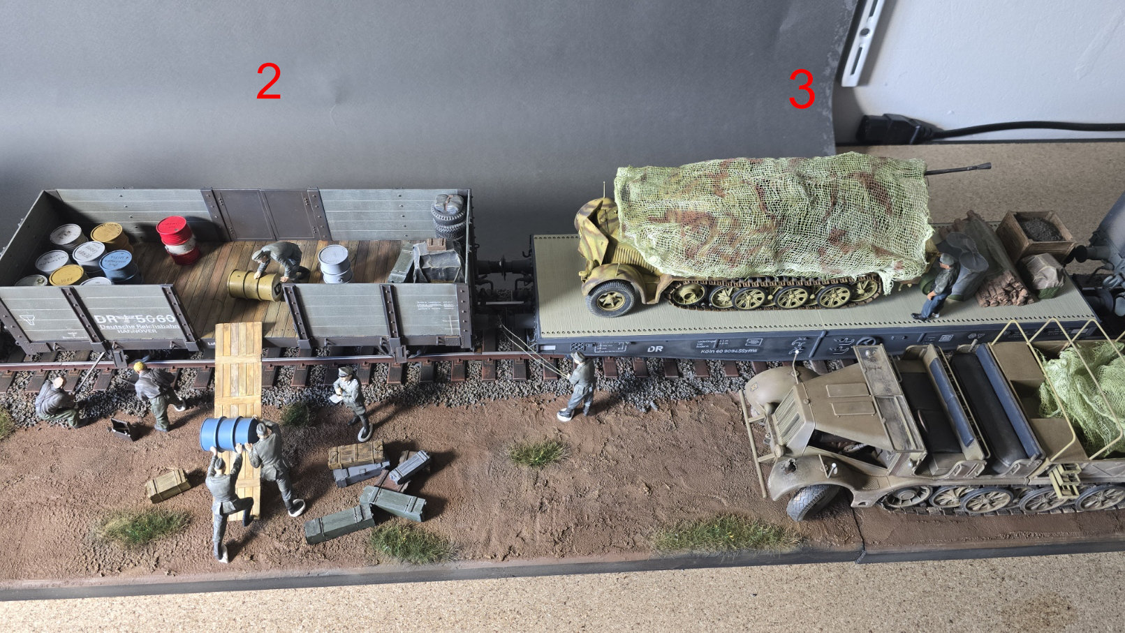 J'ai reçu par colis les 2 pièces réalisées par Didier & Alain.V, un superbe SdKFz.7 pour Didier et un wagon à bords moyens par Alain. Ils ont également peints quelques figurines et accessoires que je n'ose pas encore mettre en place, je dois attendre que le diorama soit un peu plus avancé. Les pièces sont magnifiques ! Merci les copains !