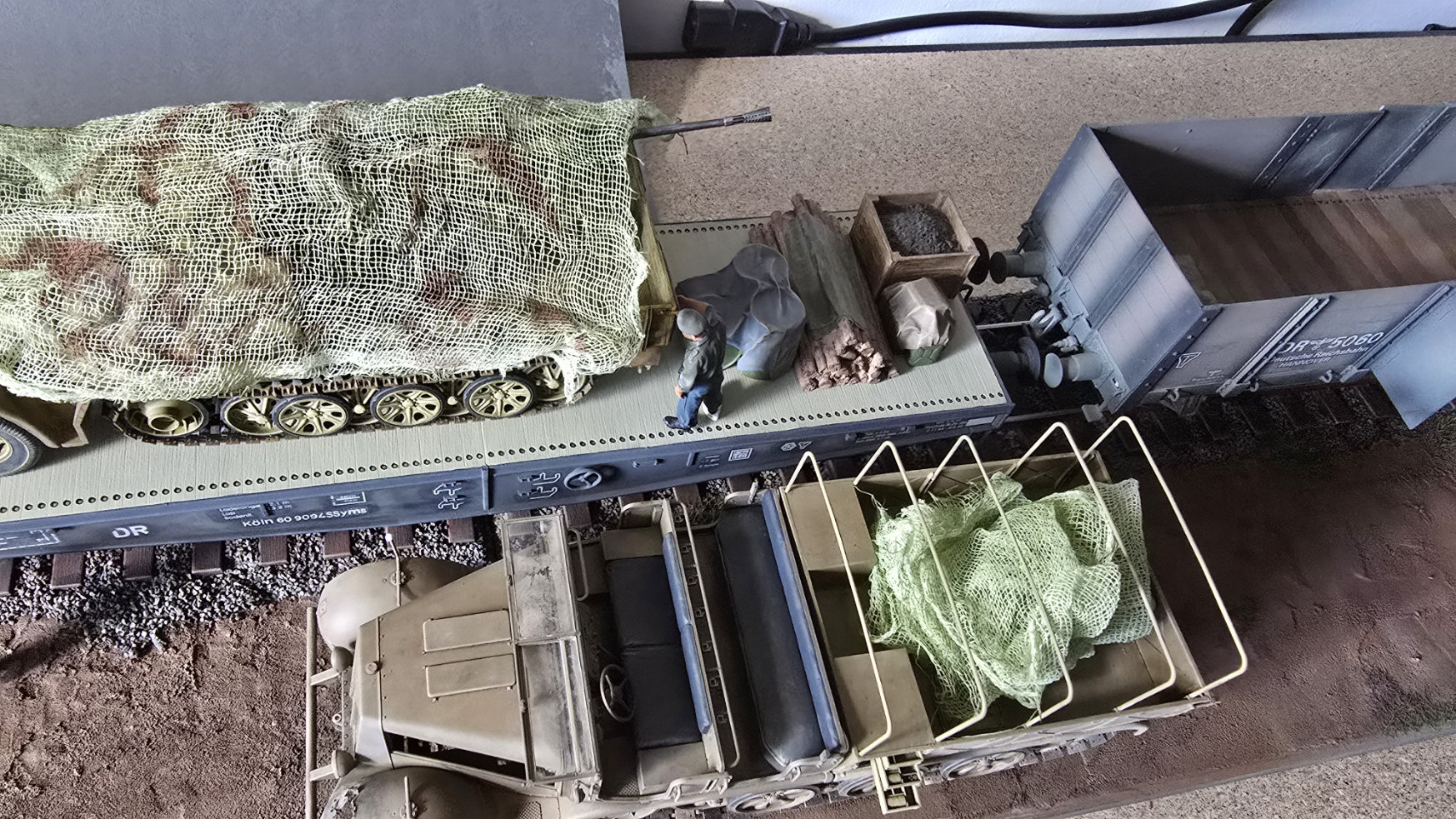 Composé d’une locomotive BR52, de plusieurs wagons, véhicules et figurines, ce projet mobilise actuellement trois membres du club, tous animés par la même volonté de recréer une scène chargée d’histoire. Ici, pas de décor grandiloquent — juste une voie ferrée, comme seul témoin d’un mouvement suspendu dans le temps.