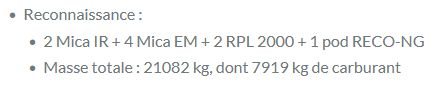Nous allons réalisé un appareil en configuration Reconnaissance.Visible sur le site de référence Omnirol-Rafale, on peut lire le détail de cette configuration