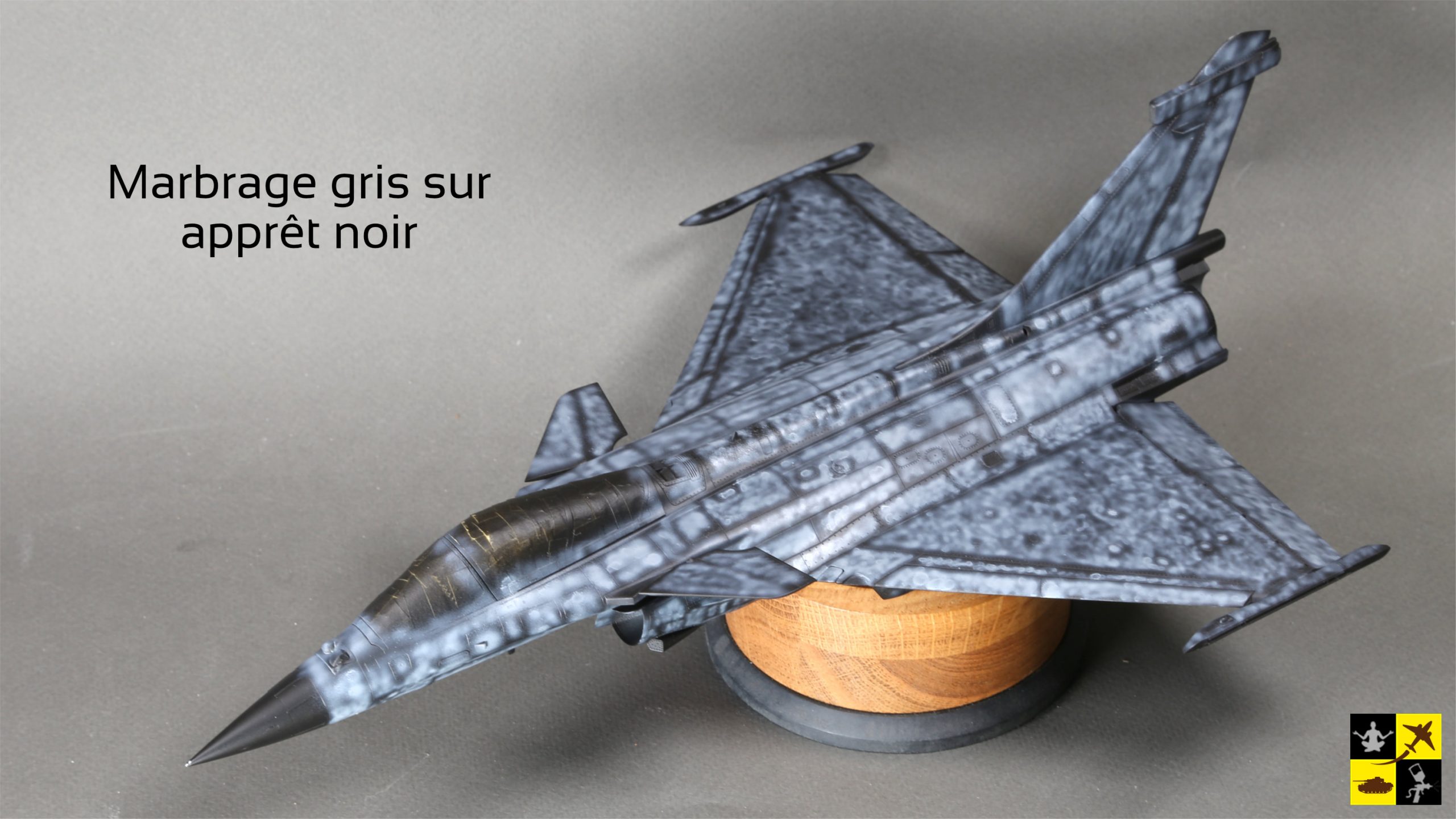 La couleur officielle du Rafale est le gris moyen satiné "supériorité aérienne", FS36293. On peut obtenir cette couleur avec le mélange suivant: 75% de Gunze Mr Color H306 et 25% de Gunze Mr Color H307